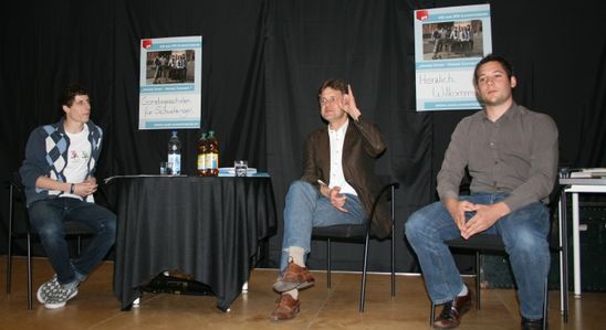 Der Veranstaltung war eine Befragung im Internet vorangegangen. Auf ihrer Homepage fragte die "U35 der SPD" Schüler, Eltern und Lehrer, was sie von einer Ganztagsschule erwarten, was sie den Kindern und Jugendlichen ermöglichen sollte und welche Nachteile dieses Angebot unter Umständen mit sich bringen könnte. Die Standpunkte gaben die Moderatoren an den Gast, der selbst vierfacher Vater ist, mit der Bitte um eine Stellungnahme weiter. Mentrup erklärte zunächst den Unterschied zwischen einer offenen (ganz normaler Unterricht, danach Freizeit- und Hausaufgaben- Betreuungsangebote auf freiwilliger Basis) und einer gebundenen Ganztagsschule (sowohl der Unterricht als auch die zusätzlichen Angebote sind bis zu einer bestimmten Uhrzeit verpflichtend). Letztere Form favorisiere die SPD, weil sie die pädagogischen Vorteile habe, dass zum einen alle Kinder zusammen in der Schulgemeinschaft blieben und zum anderen der Sachunterricht auf den ganzen Tag verteilt werden könne, so dass es nach zwei bis vier Schulstunden immer wieder Gelegenheit zur Entspannung gebe. Diese Rhythmisierung fördere die Konzentration über einen längeren Zeitraum, so der SPD- Abgeordnete. Sinnvoll hält er dabei gute Ergänzungsangebote, die den klassischen Sachunterricht um die soziale, sportliche oder künstlerische Möglichkeiten erweitern.