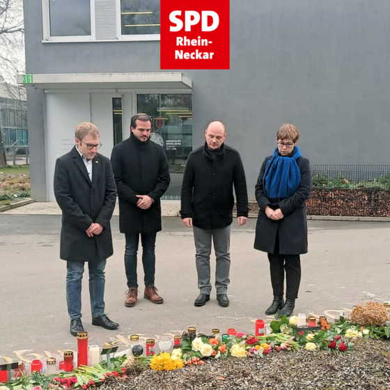 Die Kreisvorsitzenden Andrea Schröder-Ritzrau und Daniel Born haben gemeinsam mit ihren Stellvertretern Sebastian Cuny und Jan-Peter Röderer den Erinnerungsort an der Universität Heidelberg besucht und Blumen niedergelegt. Schröder-Ritzrau erklärte: „Die Tat ist sinnlos und unfassbar – sie lässt uns ratlos. Aber wir stehen zusammen, wir bleiben weltoffen, die Universität Heidelberg ist ein lebendiger Ort der Lehre, des Strebens und der Menschenbildung. Wir alle sind getroffen. Die gemeinsame Bewältigung hilft uns und spendet Trost im Unbegreiflichen. Und sie hilft uns nach vorne zu schauen.“